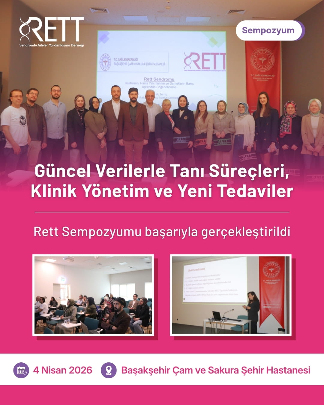 📍 4 Nisan 2026 tarihinde, Başakşehir Çam ve Sakura Şehir Hastanesi Başhekimliği iş birliğiyle “Rett Sendromu: Güncel Verilerle Tanı Süreçleri, Klinik Yönetim ve Yeni Tedaviler” başlıklı sempozyum gerçekleştirildi.